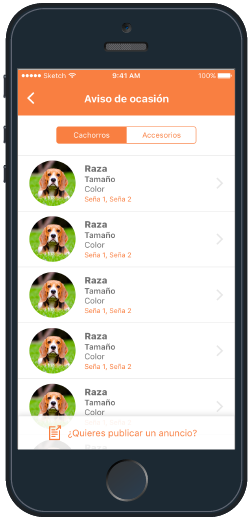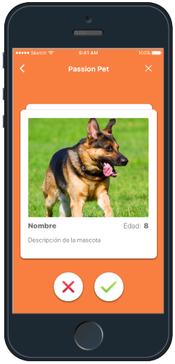 Passion Pet te permitirá navegar entre candidatos y candidatas para tu mascota, filtrando por raza, genero y edad. Una vez que encuentres al match indicado te podrás contactar con su dueño.
